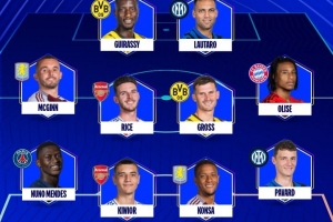 后卫:努诺-门德斯(巴黎)、基维奥尔(阿森纳)、孔萨(阿斯顿维拉)、帕瓦尔(国米)